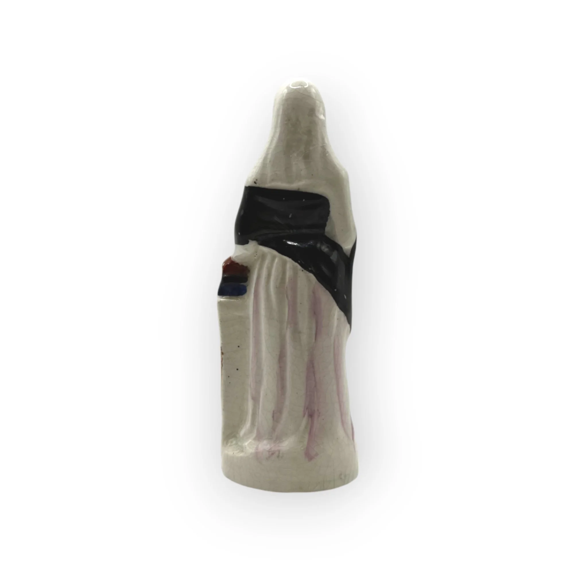 This exquisite Staffordshire figure of Florence Nightingale, dating to around 1885, is a remarkable tribute to a pivotal figure in nursing history. Representing an early version from the era of the Crimean War, this piece showcases the detailed craftsmanship that Staffordshire pottery is renowned for.